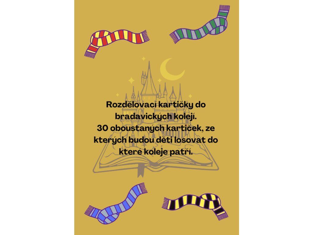 Oboustranné kartičky, které děti rozřadí do bradavických kolejí.