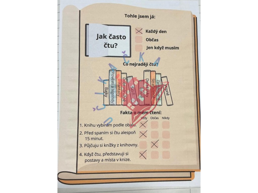 Materiál k hodnocení vlastního čtení a přečtených knih.