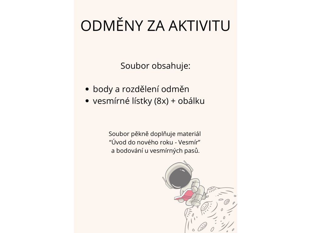 Odměňovací systém do školní družiny na téma Vesmír.