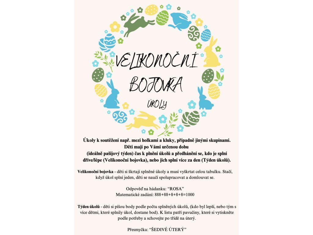 - velikonoční bojovka - úkoly
